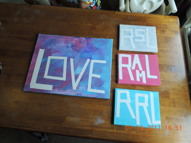We tried another pinterest project the other day when FP was over. Earlier in the day I let the kids pick out their paint color and Ryan picked out one for Frank. The kids liked painting but were ready to get down and play as soon as their canvas was covered!